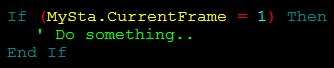 EndFrame: Wenn Sie möchten, dass dem STA für eine Animation Bilder zwischen dem ersten und letzten Bild der Liste zugeteilt werden, können Sie mit diesem Parameter das letzte Bild zuweisen. Jedes der zwischen StartFrame und EndFrame liegende Bild wird dann in die Animation eingebunden und wechselt in der mit .UpdateInterval definierten Geschwindigkeit. Sie können die Animation vorwärts oder rückwärts laufen lassen. Wenn der Wert außerhalb des gültigen Bereiches liegt, wird er ignoriert.