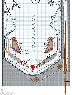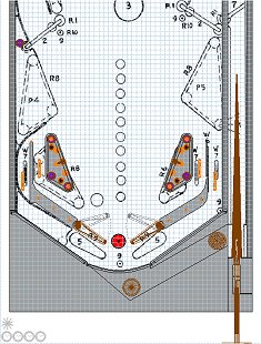 Das in Future Pinball vordefinierte Standard-Maß eines Spieltisches ist mit 516 x 1068 mm korrekt und der Abstand der Flipperfinger zum darunter liegenden Apron so wie die Führungs-Reling am oberen Rand des Spieltisches sind ebenfalls richtig definiert, so dass diese in der Regel nicht verändert werden brauchen. Wenn Sie eine Eigenentwicklung in Angriff nehmen möchten, können Sie daher als Basis für die Skizze ein Blueprint erstellen und auf dem Ausdruck das Layout für Ihren Spieltisch planen. Wie man ein Blueprint erstellt, können Sie dem gleichnamigen Kapitel entnehmen.