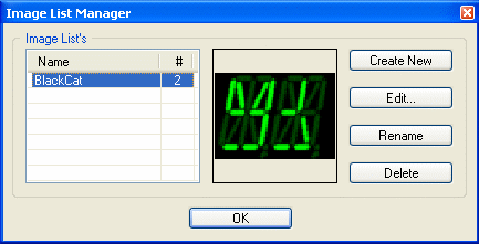 Er ermöglicht das Anlegen einer neuen und das Editieren einer bestehenden Image List. Image Listen können hier auch umbenann oder gelöscht werden.