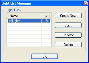 Ein Klick auf Create New erstellt eine neue, noch leere Light List mit dem Namen "LightList1". Wenn "ImageList1" schon existiert, bekommt die neue Image List den Namen "LightList2".