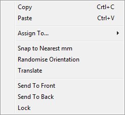 Sie können mit einem rechten Mausklick auf selektierte Objekte über das Kontextmenü Randomise Orientation Ihren Objekte wie z. B. Scharauben oder Muttern eine unterschiedliche Drehung geben, damit diese nicht alle gleich aussehen.