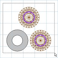 Wenn Sie aus der Objektleiste einen Gummiring - die Vorgehensweise haben wir ja oben schon beschrieben - auf der Arbeitsfläche plazieren und diesen mit der Maus über den Peg ziehen, achten Sie darauf, dass die Innenkante des Gummiringes mit der vorgenannten Orientierungslinie übereinstimmt. Alsdann ist dieser korrekt plaziert. |