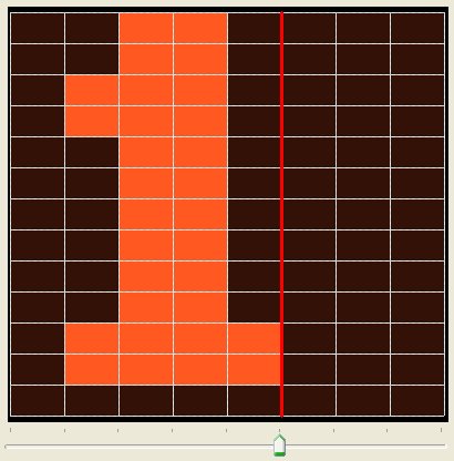 Dies ist das Hauptfenster, in dem die Pixel-Komponenten für die Schriftart (für das aktuell gewählte Zeichen) gezeichnet werden.