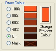 Die aktuelle Farbe für das Zeichnen von Schriftzeichen wird über den Button |