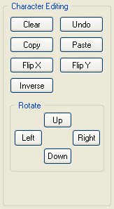 Rotieren verschiebt die Pixel des aktuellen Zeichens in die Richtung, auf deren Schaltfläche Sie klicken.