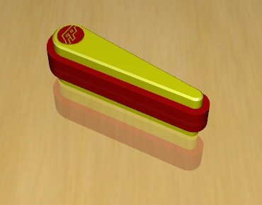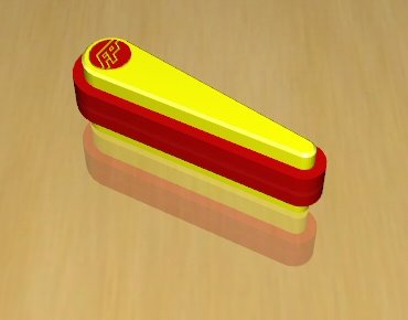 Diese Textur wurde speziell für Form des Modells gestaltet. Die Aufteilung der Bereiche einer solchen Textur ist von Objekt-Typ zu Objekt-Typ unterschiedlich, jedoch ist jeder Bereich der Grafik einem bestimmten Bereich auf dem Modell zugeordnet. Wenn diese Textur auf dem Flipperfinger angewendet wird, hat dieser schon recht viel Ähnlichkeit mit dem Vorbild auf realen Flippern.