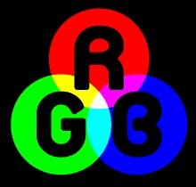 Die folgende Abbildung zeigt die drei RGB Komponenten und wie deren Mischung weitere Primärfarben erzeugt: