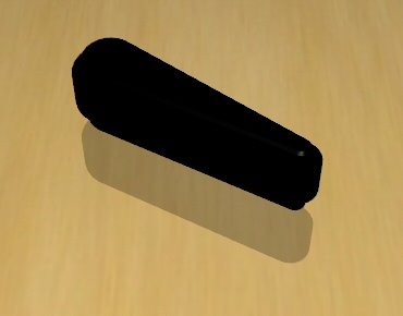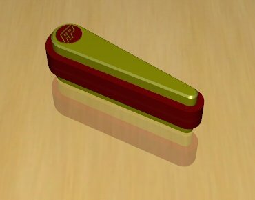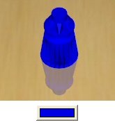 Wenn wir dem Objekt die Farbe Blau zuweisen (0, 0, 255), verhält es sich fast wie mit der Farbe Schwarz, da weder der gelbe Körper noch der rote Gummi Blauanteile enthält. Der Bereich, in dem sich die Reflektion befindet, die das Raumlicht wiederspiegelt, ist jedoch sichtbar, da in diesem Raumlicht auch Blauanteile vorhanden sind. Deshalb bekommt diese Reflektion eine blaue Tönung.