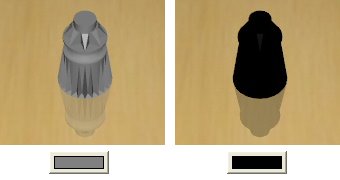 Wie auch im Zusammenhang mit Texturen beschrieben, liefern reine Farben mit voller Stärke schlechtere Ergebnisse in der Darstellung, da sie im Zusammenspiel mit dem Echtzeit-Lichtsystem dem Objekt die Strukturen rauben. Dies trifft auch für Schwarz zu. Möchten Sie schwarze Objekte verwenden möchten, wählen Sie stattdessen besser ein sehr dunkles Grau (64, 64, 64).