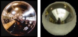 Wenn jedoch das Sphere Mapping auf die Textur angewendet wird, kommen die Reflexionen des Raumlichtes erheblich besser zur Geltung, und die Objekte sehen wirklich aus, als hätten sie eine verchromte Oberfläche. Dabei verändern sich die Reflexionen je nach Blickwinkel der Kamera (z. B. wenn die Kamera die Kugel verfolgt).
