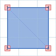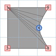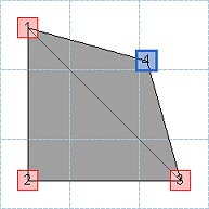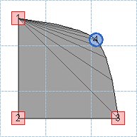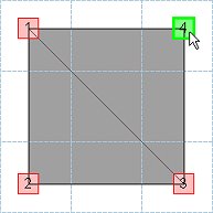 Shapepoints formen ein Objekt, indem Sie zunächst 4 Eckpunkte bilden, die durch einfache Linien miteinander verbunden sind. Das Bearbeiten dieser Punkte ermöglicht jedoch auch das Anlegen von Kurven, wie wir im folgenden sehen werden.