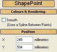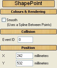 Diese Einstellungen erlauben es Ihnen, die Arbeitsweise und die Position der Shapepoints zu verändern. Achtung: Die Texturkoordinaten und die Ereignis-ID (Event ID) felder sind nicht Bestandteil dieses Kapitels. |