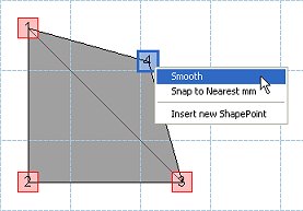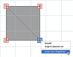Natürlich müssen Sie bei vielen Shapepoint-basierten Objekten auch Shapepoints hinzufügen. Dies können Sie realisieren, indem Sie einen Rechtsklick auf einen Shapepoint setzen und aus dem Kontextmenü Insert new Shapepoint wählen. Alsdann wird ein neuer Shapepunkt zwischen dem aktuell markierten und dem nächsten Shapepunkt (entgegen dem Urzeigersinn) gesetzt. Die Nummerrirung der Punkte wird entsprechend aktualisiert.