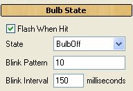 Diese Einstellung legt die Zeit in Millisekunden fest, die Future Pinball für jeden Zustand (Licht an / Licht aus) verwendet. Nach dem Ablauf des unter BlinkPattern definierten Musters wird Future Pinball diese Sequenz erneut abarbeiten, so lange der Status des Lichtes auf BulbBlink steht. Der Interval muss mindestens 25 Millisekunden betragen.