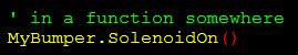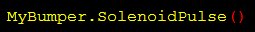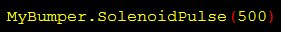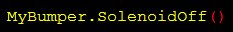 Obwohl der Mechanismus des Bumpers automatisch abläuft, ist es dennoch möglich, diesen Ablauf zu manipulieren. Wenn Sie in der Beispiel-Routine oben die Methode MyBumper.SolenoidOff als erste Zeile setzten, wird der automatische Vorgang unterbrochen und die Spule des Bumpers wird nicht anziehen.