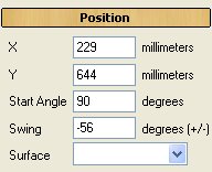 X definiert die Position des Objektes in Millimeter, gemessen vom linken Spieltischrand.
