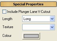 ... ermöglicht die Zuordnung einer Textur für das Lane V-Cutout. Ein Klick auf dieses Listenfeld zeigt alle Grafiken, die zur Auswahl zur Verfügung stehen. Wählen Sie hier 'plunger-coutout'.