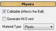 Ist diese Option aktiviert, wird das Objekt Einfluss auf das Rollen der Kugel nehmen, z. B. davon abprallen. Bei deaktiviertem Collidable wird die Kugel durch dieses Objekt hindurch rollen, auch wenn es sichtbar ist.