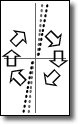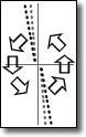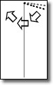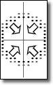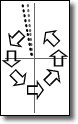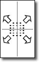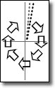 Auf dem Bild links sehen Sie, wie ein bestimmter Effekt auf dem Spieltisch (respektive Backbox) abläuft. Die dunkleren Punkte repräsentieren den "Heat", während die helleren (grauen) Punkte den "Tail" darstellen. Die Pfeile zeigen die Richtung an, in die sich der "Head" bewegt. In unserem Beispiel von beiden Seiten gleichzeitig nach innen zur virtuellen Mitte des Spieltisches hin.