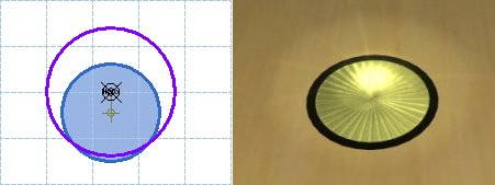 Wenn Sie ein Round Light auf dem Spieltisch erstellen, wird dieses wie folgt auf dem Spieltisch gezeichnet.