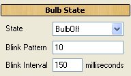 Diese Eigenschaft stellt den Status der Lichtes ein. Wenn der Status auf BulbBlink gesetzt wird, dann geht das Licht entsprechend dem eingestellten Interval an und aus. Ist für Blink Pattern ein Muster eingetragen, wird dieser Wert abgearbeitet.