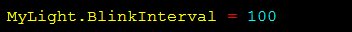 BlinkInterval ist ein positiver Wert in Millisekunden, der beschreibt, wie lange ein Zustand (ON oder OFF) dauern soll. Er muss mindestens 25 Millisekunden betragen.