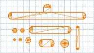 Wenn Sie ein Ornament erstellen, wird es entsprechend seiner Form ähnlich wie links abgebildet auf der Arbeitsfläche gezeichnet. Wie Sie feststellen, werden Ornamente in einer anderen Farbe als andere Objekte dargestellt. Die Farbe, in der Ornamente gezeichnet werden, ist in den Editor-Einstellungen definiert. |