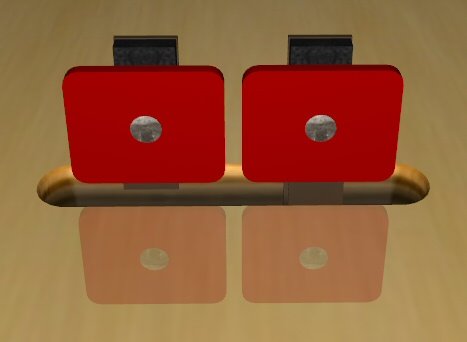 Wenn Sie sich das Bild oben anschauen, werden Sie feststellen, dass der Stamm des linken Targets in Höhe der Spieltisch-Oberkante abgeschnitten scheint, während der des rechten Targets in den Ausschnitt hineinragt. Der Grund hierfür liegt in der Art und Weise, wie Ausschnitte gerendert werden und in welcher Reihenfolge sie mit anderen Objekten (in unserem Fall Targets) plaziert wurden. Der Fehler, wie oben gezeigt, ist deshalb entstanden, weil der linke Target zuerst plaziert wurde und danach erst der Ausschnitt. In einem solchen Fall markieren Sie den Ausschnitt und wählen im Kontextmenü 'Send to back'. Somit ist die korrekte chronologische Reihenfolge hergestellt und der Fehler ist nicht mehr vorhanden.