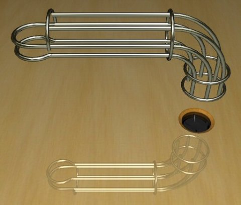 Wenn Sie eine Wire Ramp auf Ihrem Spieltisch erstellen, wird sie wie nebenstehend dargestellt, auf der Arbeitsfläche gezeichnet. Da Wire Ramps auf Ramp Points basieren, sollten Sie mit deren Umgang vertraut sein, bevor Sie dieses Kapitel fortsetzen, denn Ramp Points auch dazu verwendet werden, bestimmte Ausführungen der Rampen zu selektieren oder Ringe einzufügen. |