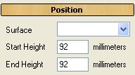 ... definiert die Starthöhe in Millimeter von der Oberfläche, auf die die Rampe plaziert wurde. Es sind Werte von 0 bis 150 Millimeter erlaubt. Indem Sie die Start- und Endhöhe verändern, können Sie die Rampe entweder steigen oder fallen lassen.