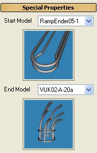 Aus diesem Dropdown-Listenfeld können Sie das Modell für den Anfang Ihrer Rampe wählen. Tip: Wenn Sie die Bezeichnung des gewünschten Objetes nicht kennen, öffnen und schließen Sie das Listenfeld durch Klick auf den Pfeil. Anschließend können Sie mit der Bild-Oben-/Bild-Unten-Taste Ihrer Tastatur durch die Liste blättern und die Auswahl anhand es Vorschaubildes vornehmen.