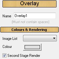 Hier wählen Sie die Image List, die für den Einsatz mit dem Overlay verwendet werden soll. Verwenden Sie für die hier benötigten Texturen das Grafik-Format BMP, da Sie Bereiche der Textur, die nicht dargestellt werden sollen als transparent definieren müssen. Siehe Textur Manager.