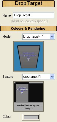Drop Targets sind Elemente, die dem Spieler Ziele bieten, die er anschießen kann, um die Punktzahl zu erhöhen. Wenn sie von der Kugel getroffen werden, fallen sie in einer Aussparung des Spieltisches nach unten. Sie können entweder als einzelnes Objekt oder in einer Bank von bis zu 10 Drop Targets angelegt werden.