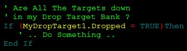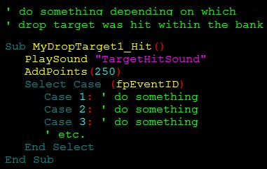Wenn die Drop Target Bank mehr als einen Target besitzt, können Sie prüfen, welcher der Drop Targets getroffen wurde. Dies geschieht über die Variable fpEventID. Diese enthält die Nummer des getroffenen Targets.