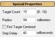 Dieses Feld enthält die Anzahl der Targets, mit der der Roto Target bestückt werden soll. Der Abstand der einzelnen Targets wird automatisch gleichmäßig festgelegt. Roto Targets können mindestens 8 und höchstens 16 Targets tragen.