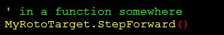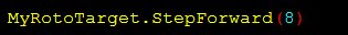 Diese Methode wird den Roto Target im Uhrzeigersinn rotieren lassen. Die Anzahl der Schritte, die dabei vollzogen werden, werden in mit PulseCount Parameter angegeben. Wenn keine Angabe gemacht wird, bewegt sich der Roto Target um 1 Schritt. Zwischen den Schritten gibt es immer eine kurze Pause, die im Step Delay definiert ist. Wenn also die Drehung aus mehreren Schritten besteht, rotiert er, pausiert, rotiert, pausiert, rotiert, usw.