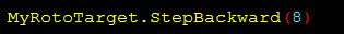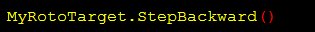 Diese Methode wird den Roto Target entgegen dem Uhrzeigersinn rotieren lassen. Die Anzahl der Schritte, die dabei vollzogen werden, werden in mit PulseCount Parameter angegeben. Wenn keine Angabe gemacht wird, bewegt sich der Roto Target um 1 Schritt. Zwischen den Schritten gibt es immer eine kurze Pause, die im Step Delay definiert ist. Wenn also die Drehung aus mehreren Schritten besteht, rotiert er, pausiert, rotiert, pausiert, rotiert, usw.