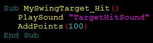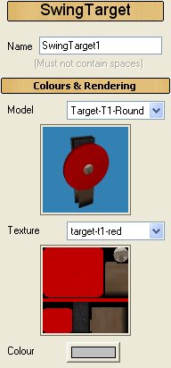 Swinging Targets sind vergleichbar mit den Leaf Targets, nur dass sie wie ein Pendel hin und her schwingen können. Der Antriebsmotor kann während des Spieles über das Script an- und ausgeschltet werden.