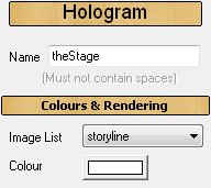 Das Hologram-Objekt erstellt die Overhead-Projektion, die für die Pinball 2000 Platform von Williams Industries entwickelt wurde. Dieses Hologram-System ermöglicht die Projektion von Farbbildern und Animationen über dem Glas und den darunter liegenden Spieltisch-Komponenten. Dies erlaubt schöne Effekte, wenn die Kugel beispielsweise Ziele trifft oder über Trigger rollt. In Future Pinball können Sie auch das DMD über ein Hologramm auf dem Spieltisch projezieren.