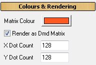 Wie schon bereits erwähnt, kann ein DMD ebenfalls über ein Hologramm projeziert werden, um die Punkte oder einfachen Text animiert darzustellen. Matrix Colour definiert die Farbe der einzelnen beleuchteten Punkte des DMD. Nicht beleuchtete Punkte der Matrix werden nicht gezeigt.