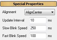 Diese Einstellung definiert die Geschwindigkeit, mit der Text für den Schnell-Blink-Effekt blinken wird. Dieser Wert muss mindestens den Werte des .DmdUpdateInterval haben.