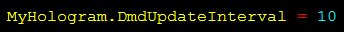 Diese Einstellung ist unabhängig vom .DmdUpdateInterval und wirkt sich nur auf die Wiederholung des Hologramms aus.