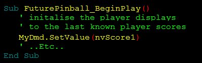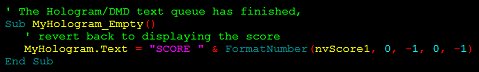 Das DMD hat einen internen Wert von 0 wenn das Spiel startet, was nicht automatisch angezeigt wird. Wenn Sie das Hologramm/DMD Display verwenden möchten, müssen Sie den .SetValue Befehl verwenden, um das Display zu initialisieren.