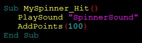Ein Spinner ist eine Metallplatte, die um ihren Mittelpunkt entlang einer horizontalen Achse dreht. Beim Auftreffen der Kugel trifft diese die untere Hälfte des Spinners, wodurch er sich, abhängig vom Schwung, mehrfach dreht und dabei Punkte vergibt. Sie sind von ihrer Aufhängung so beschaffen, dass die Frontseite des Spinners, nachdem er zur Ruhe gekommen ist, immer nach vorne zeigt. Spinner werden immer mit einer Brücke auf dem Spieltisch plaziert, auch wenn diese für die Funktion in Future Pinball nicht zwingend erforderlich ist. Brücken finden Sie bei den Ornament-Objekten.