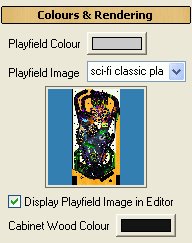 Diese Option weist dem Spielfeld eine Farbe zu. Wenn dem Spielfeld eine Textur zugewiesen wurde, wird diese mit der gewählten Farbe getönt. Es ist empfehlenswert, hier keine reine Farbe wie 100 % rot, grün oder blau zu verwenden, da sich dies nachhaltig auf das Erscheinungsbild durch das Lichtsystem von Future Pinball auswirkt. Weitere Informationen dazu entnehmen Sie bitte dem Kapitel Grafik Processing.